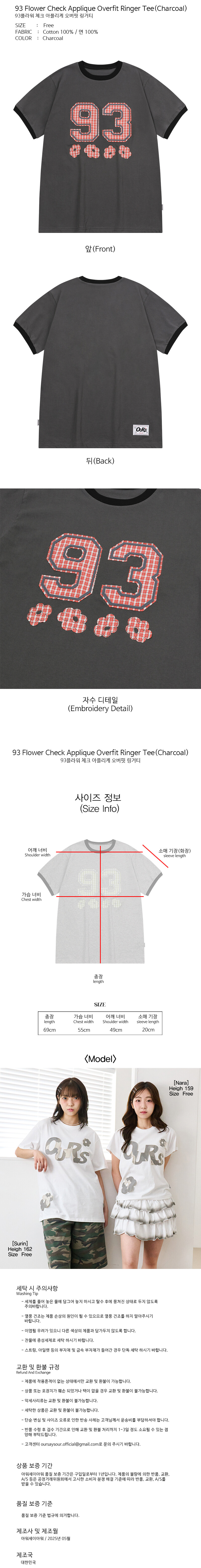 93플라워 체크 아플리케 오버핏 링거티 챠콜