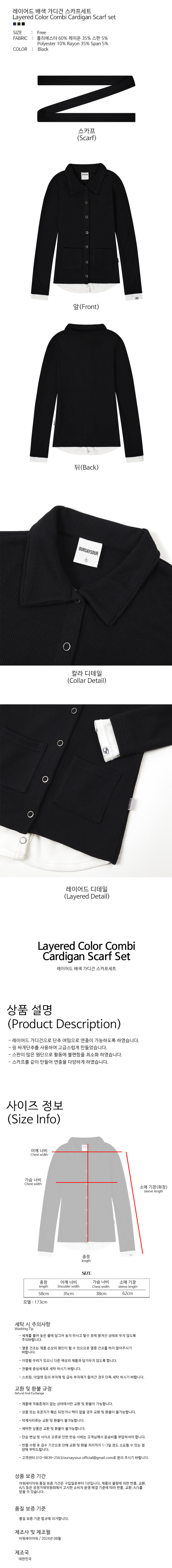 레이어드 배색 가디건 스카프세트 블랙
