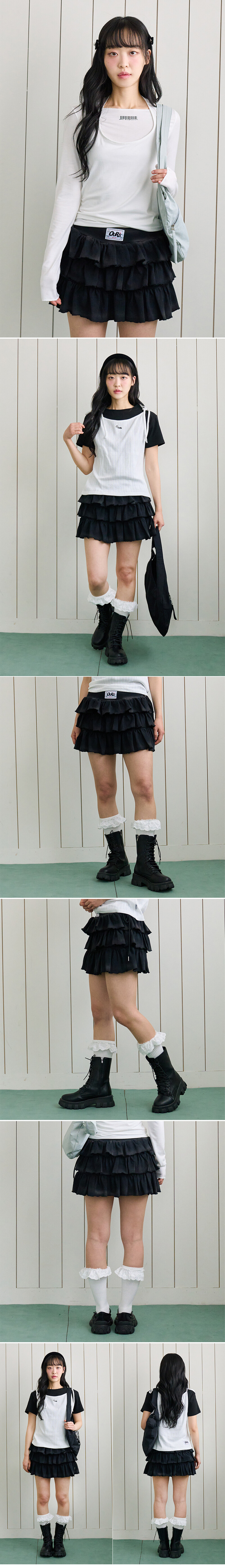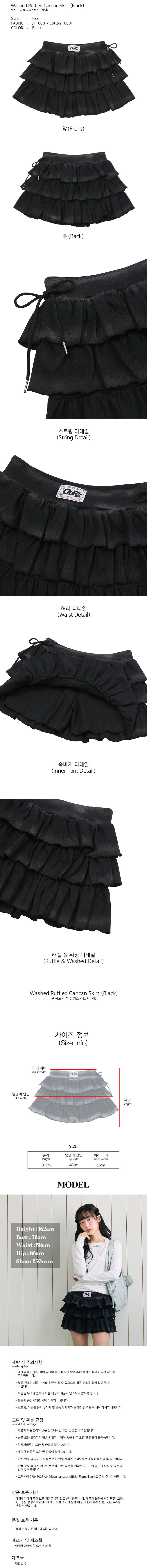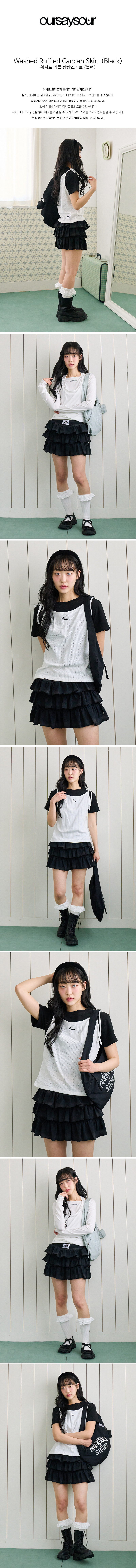 워시드 러플 캉캉스커트 블랙