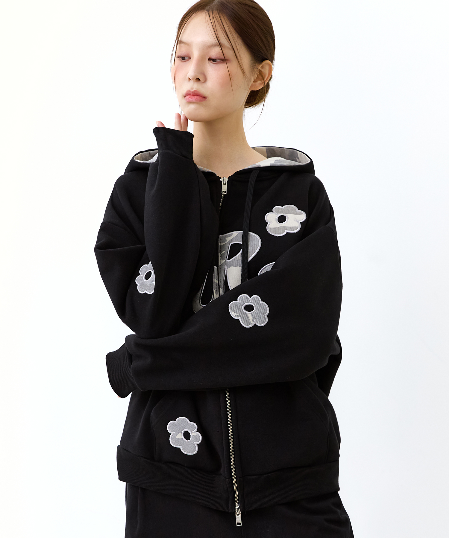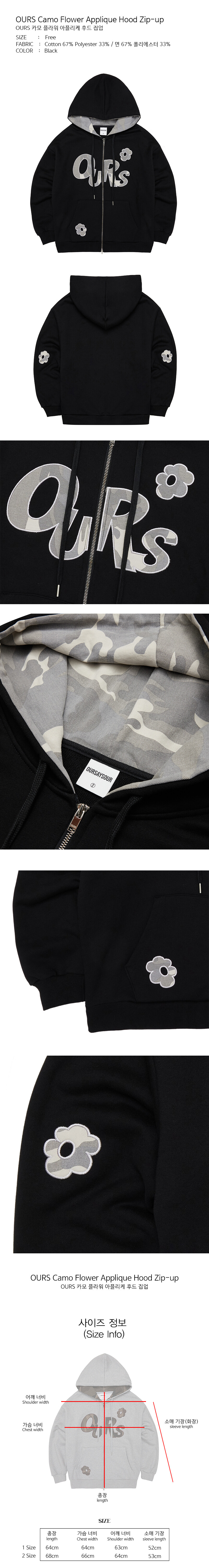 OURS 카모 플라워 아플리케 후드집업 블랙