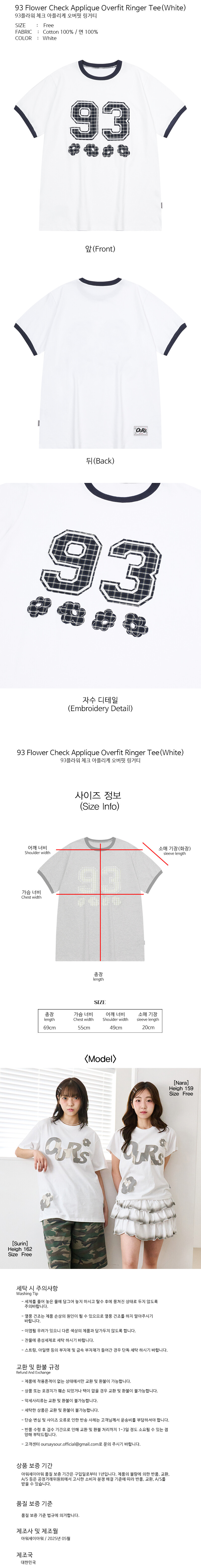 93플라워 체크 아플리케 오버핏 링거티 화이트