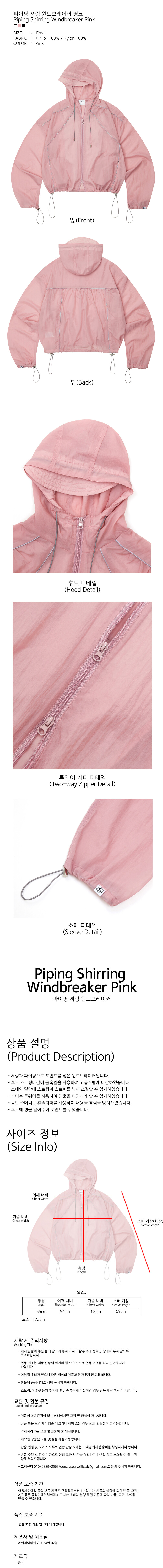 파이핑 셔링 윈드브레이커 핑크