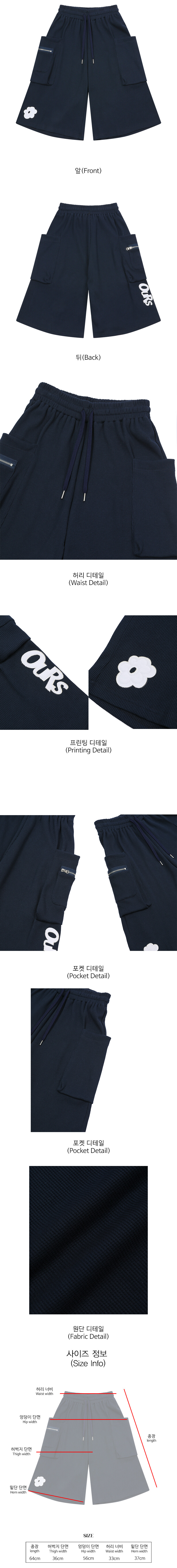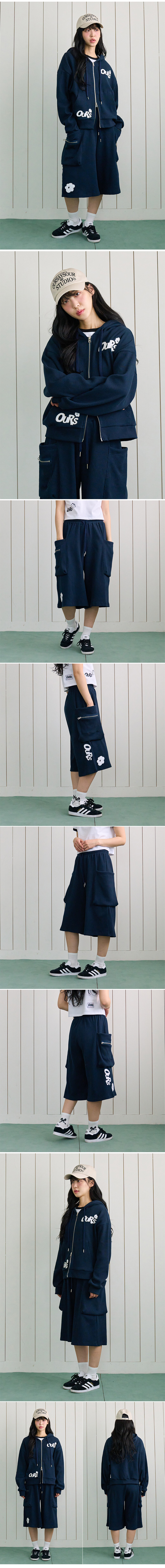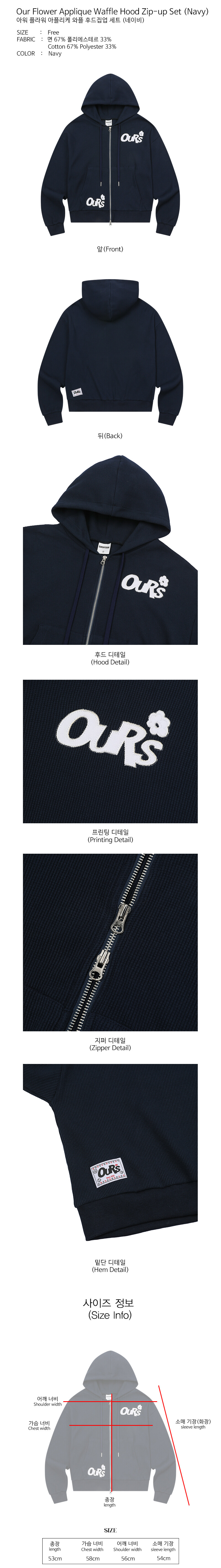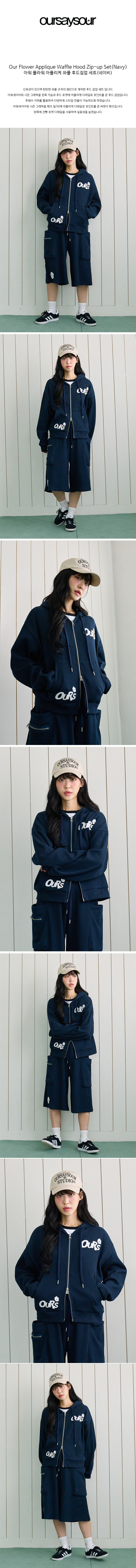 아워 플라워 아플리케 와플 후드집업 세트 네이비