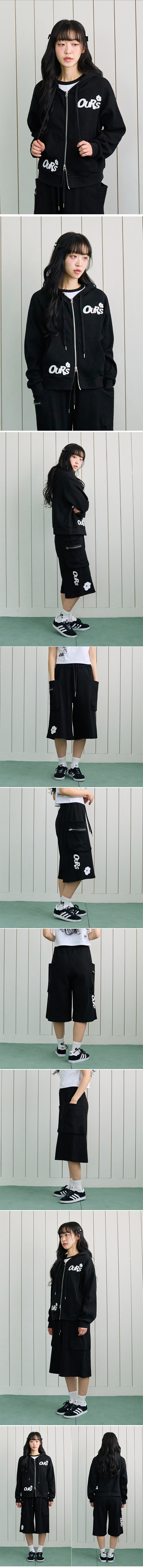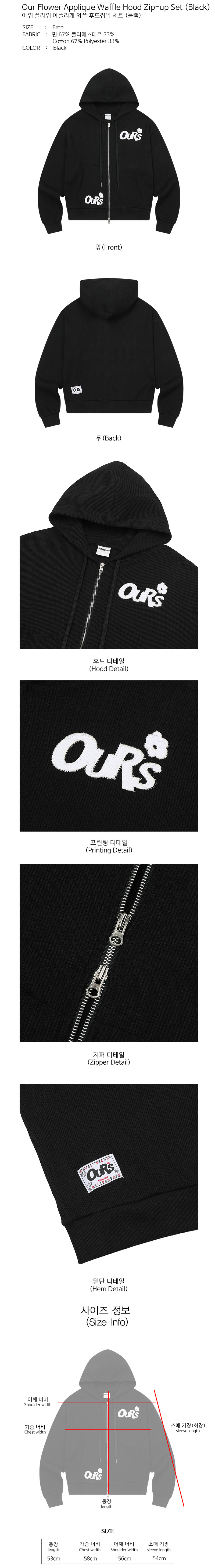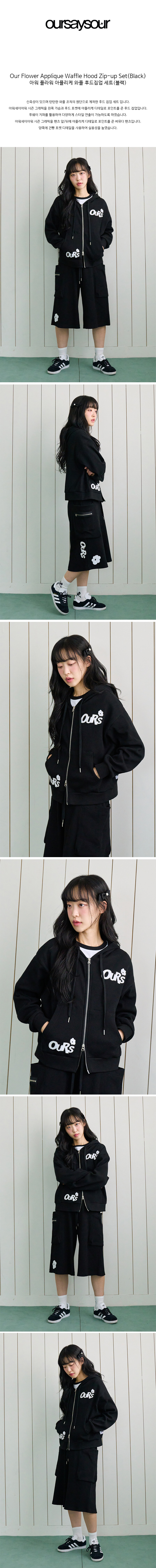 아워 플라워 아플리케 와플 후드집업 세트 블랙