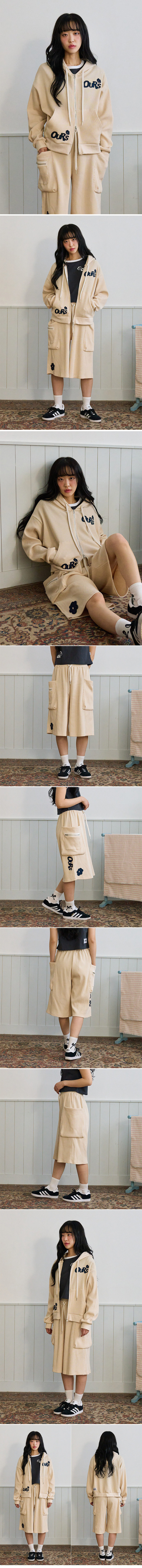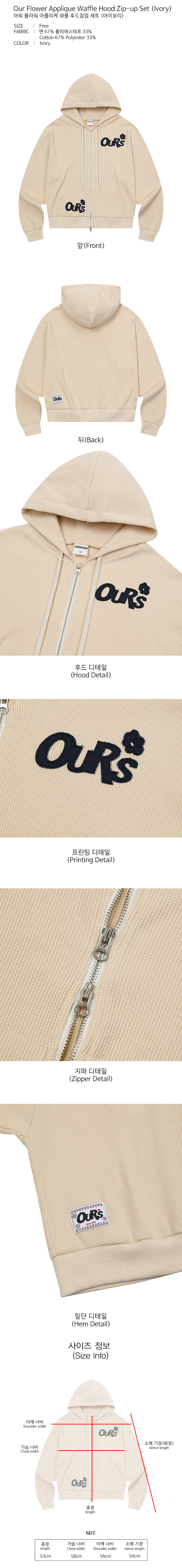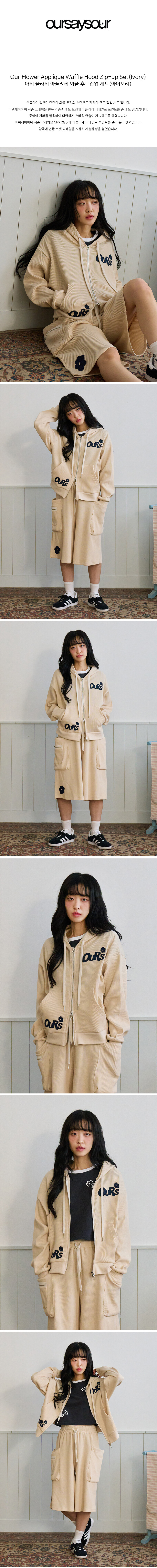 아워 플라워 아플리케 와플 후드집업 세트 아이보리