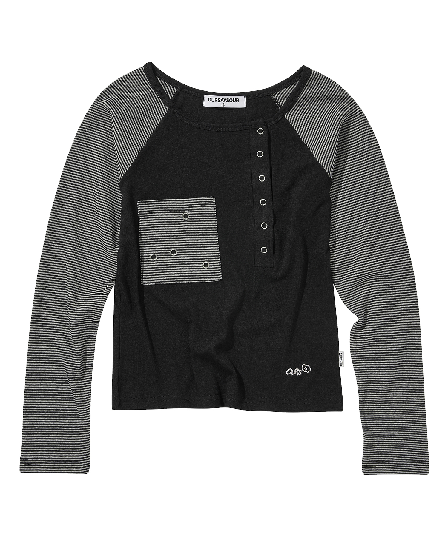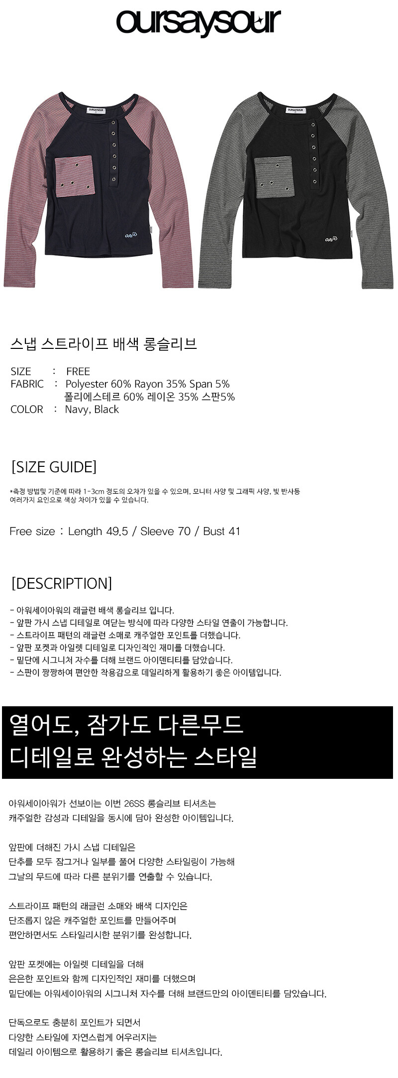 스냅 스트라이프 배색 롱슬리브 블랙