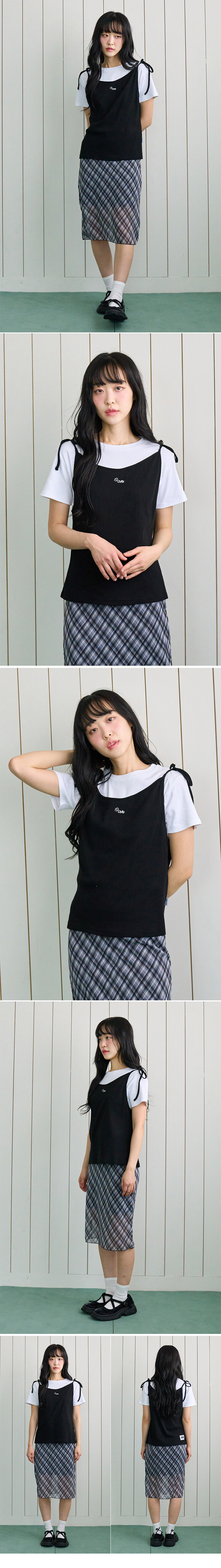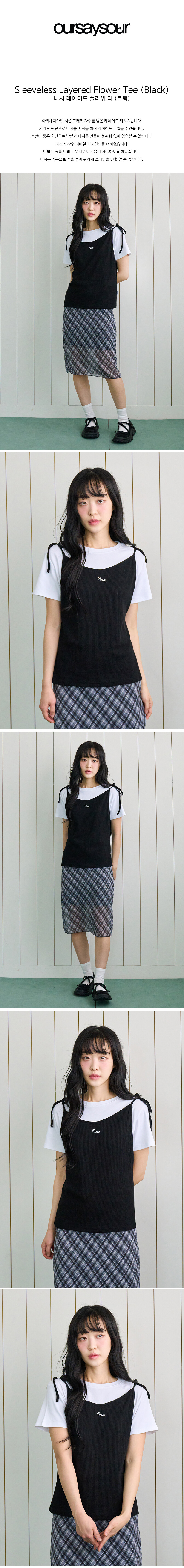 나시 레이어드 플라워 티 블랙