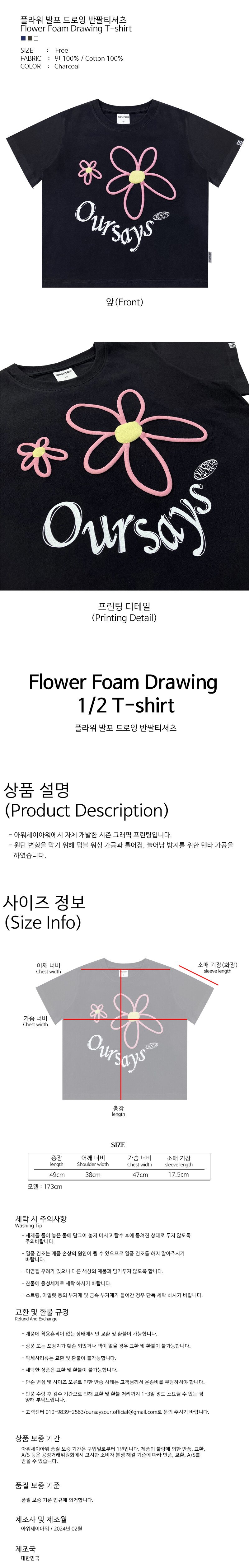 플라워 발포 드로잉 반팔티셔츠 챠콜