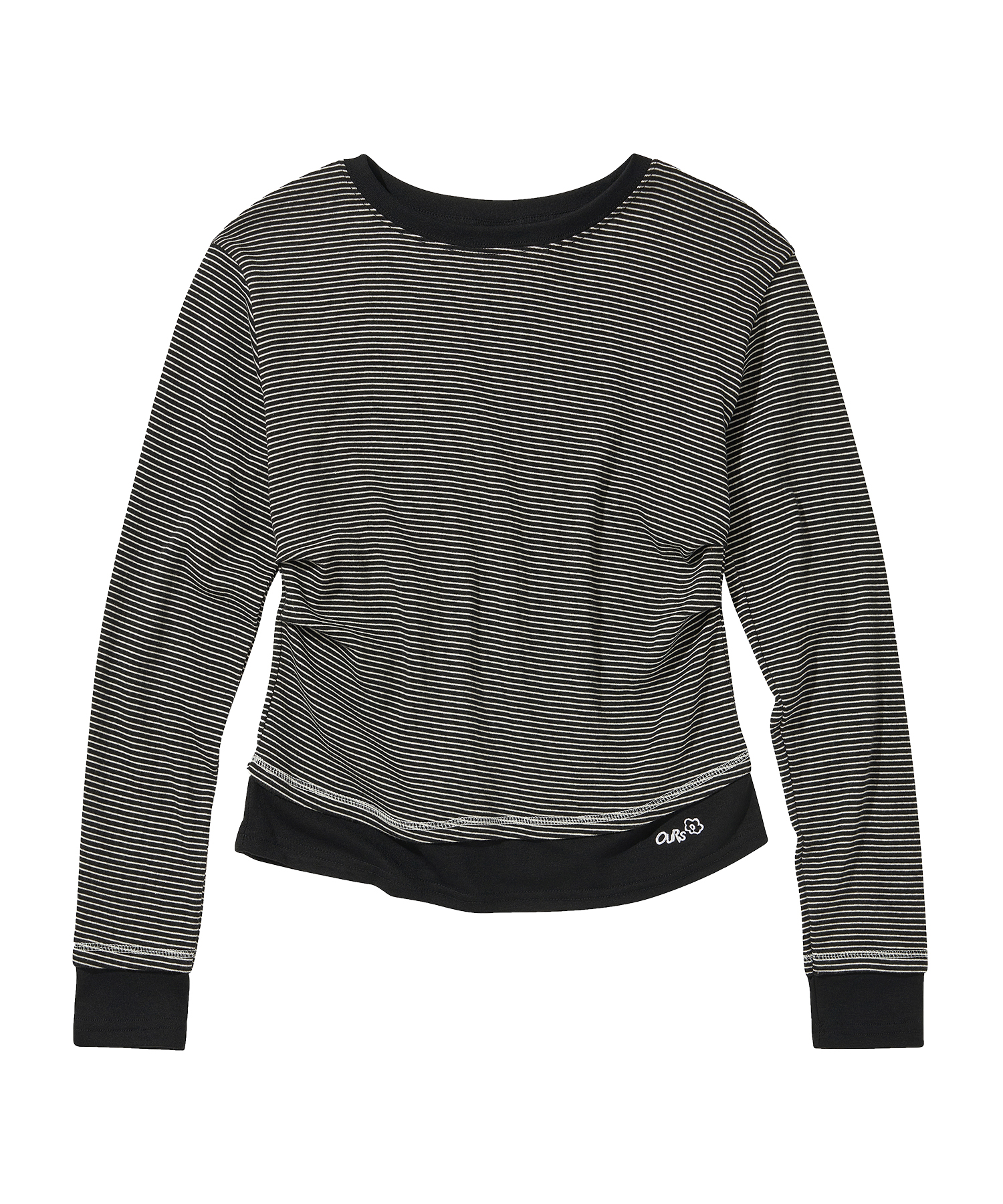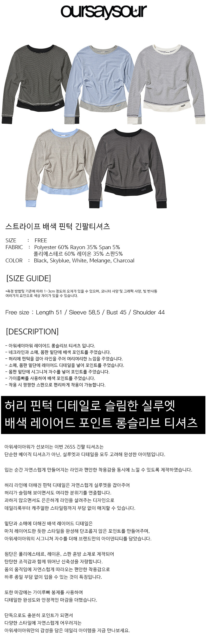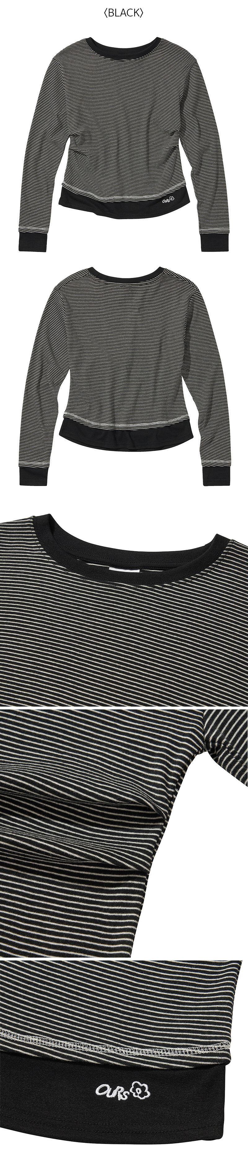 스트라이프 배색 핀턱 긴팔티셔츠 블랙