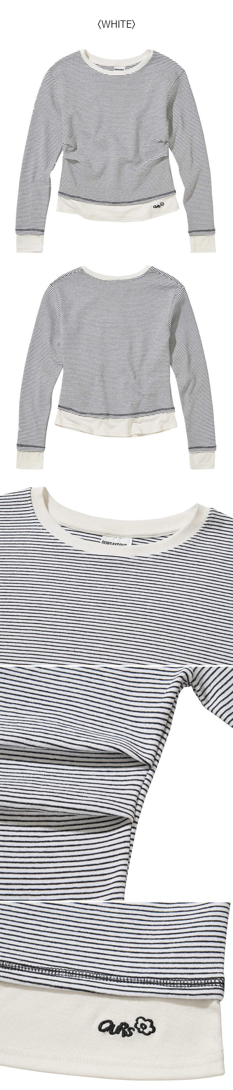 스트라이프 배색 핀턱 긴팔티셔츠 화이트