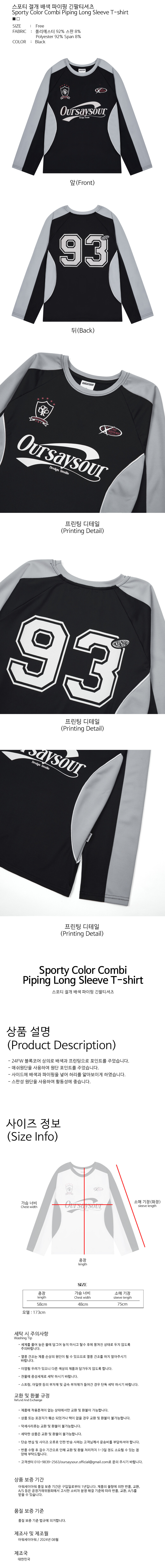 스포티 절개 배색 파이핑 긴팔티셔츠 블랙