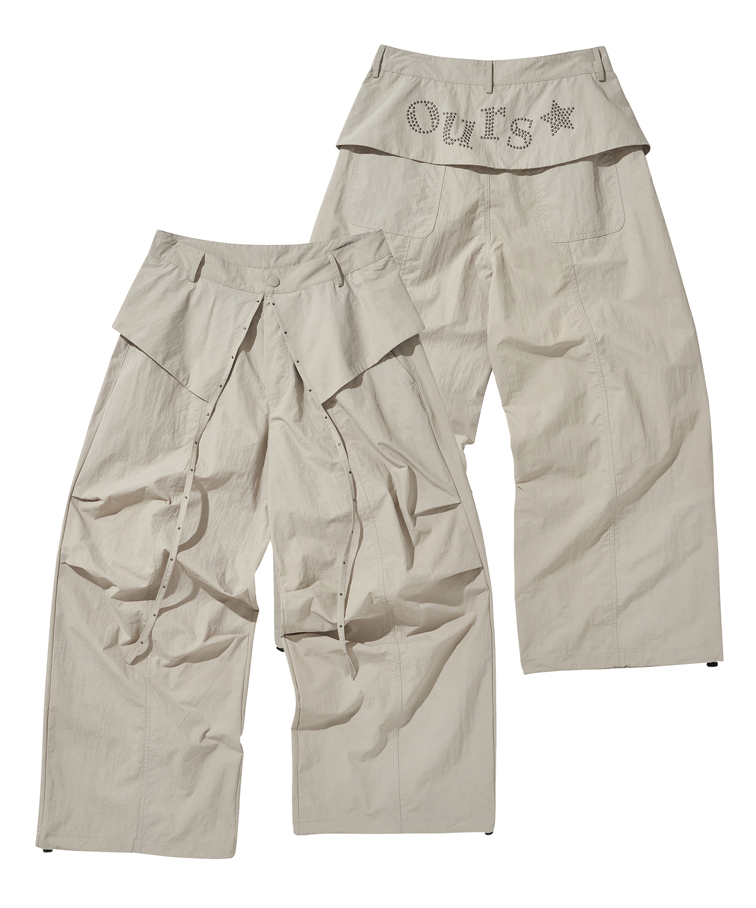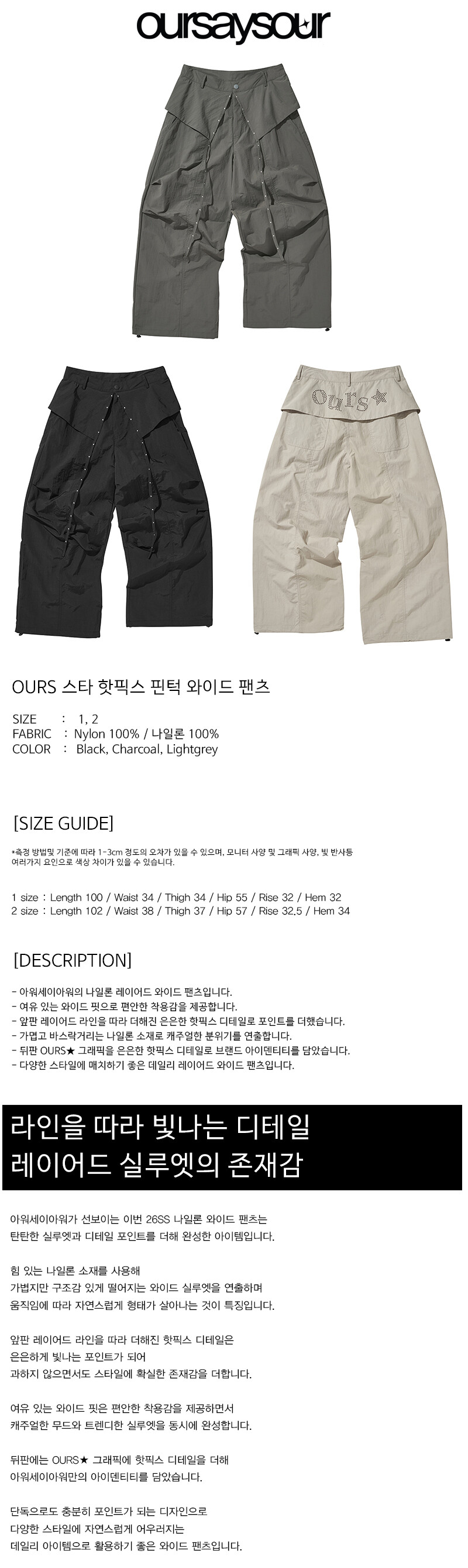 OURS 스타 핫픽스 핀턱 와이드 팬츠 연그레이
