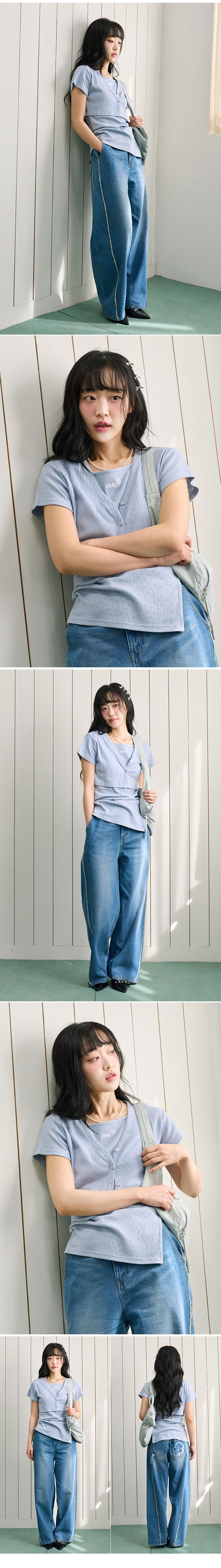 아일렛 나시 반팔 세트 소라