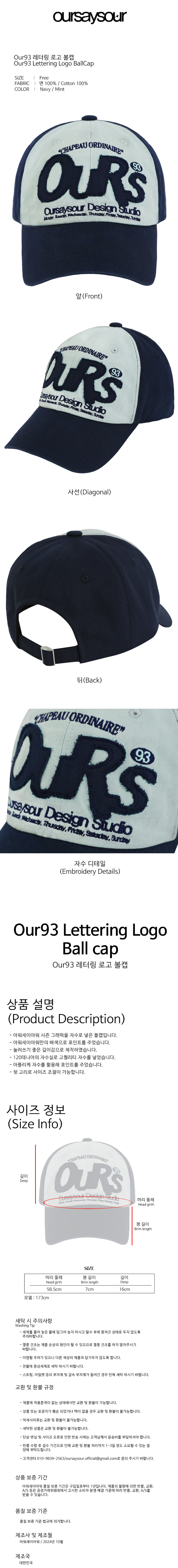 OUR 93 레터링 로고 볼캡 네이비/민트