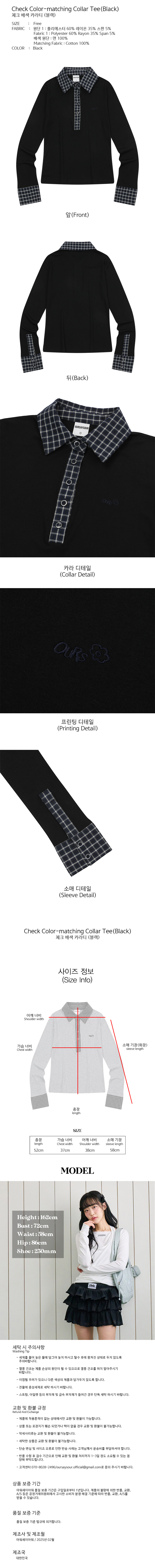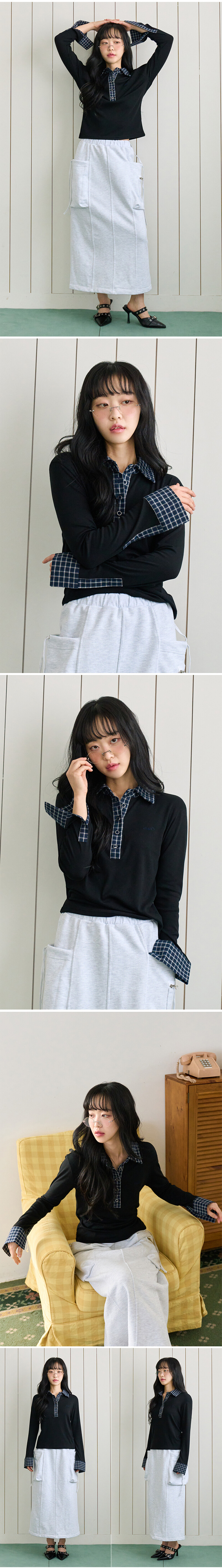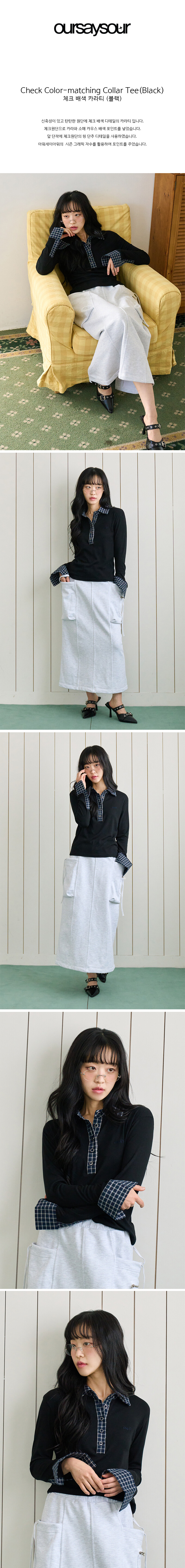 체크 배색 카라티 블랙