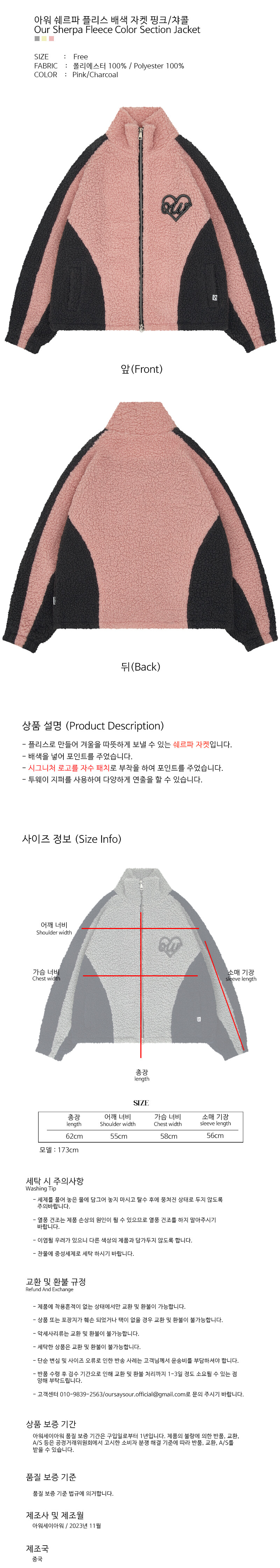 아워 쉐르파 플리스 배색 자켓 핑크/챠콜