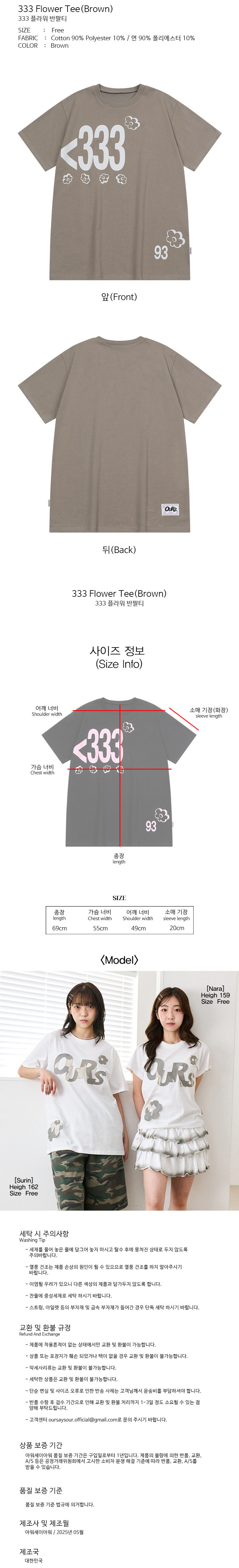 333 플라워 반팔티 브라운