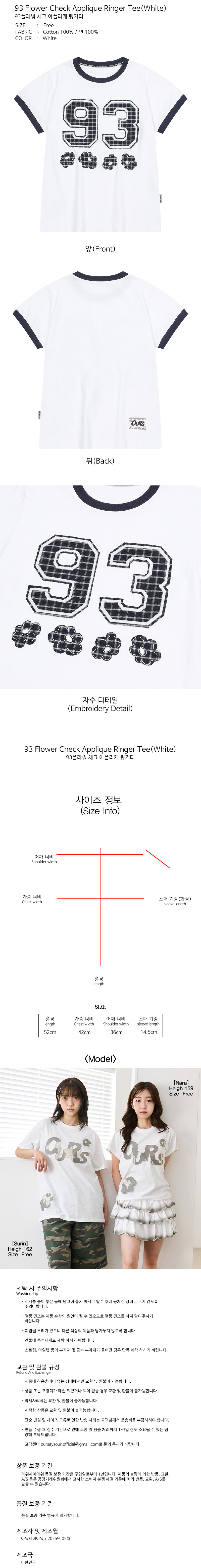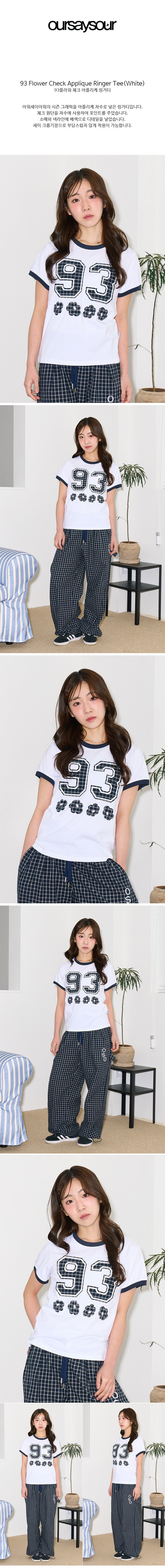 93 플라워 체크 아플리케 링거티 화이트