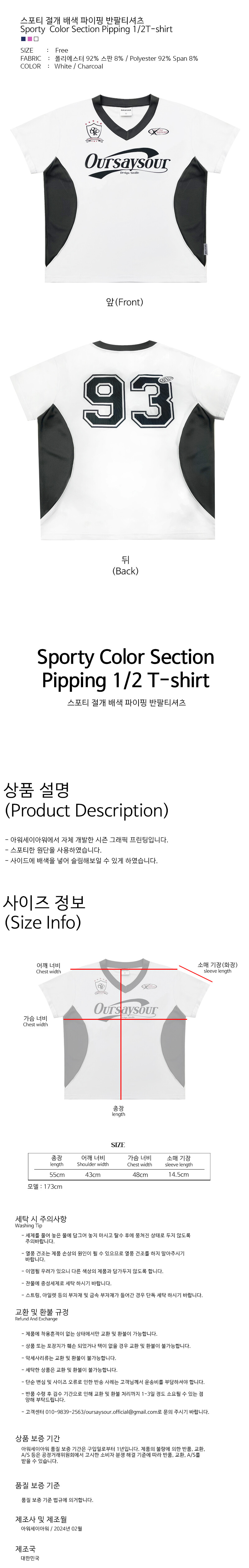 스포티 절개 배색 파이핑 반팔티셔츠 화이트/챠콜