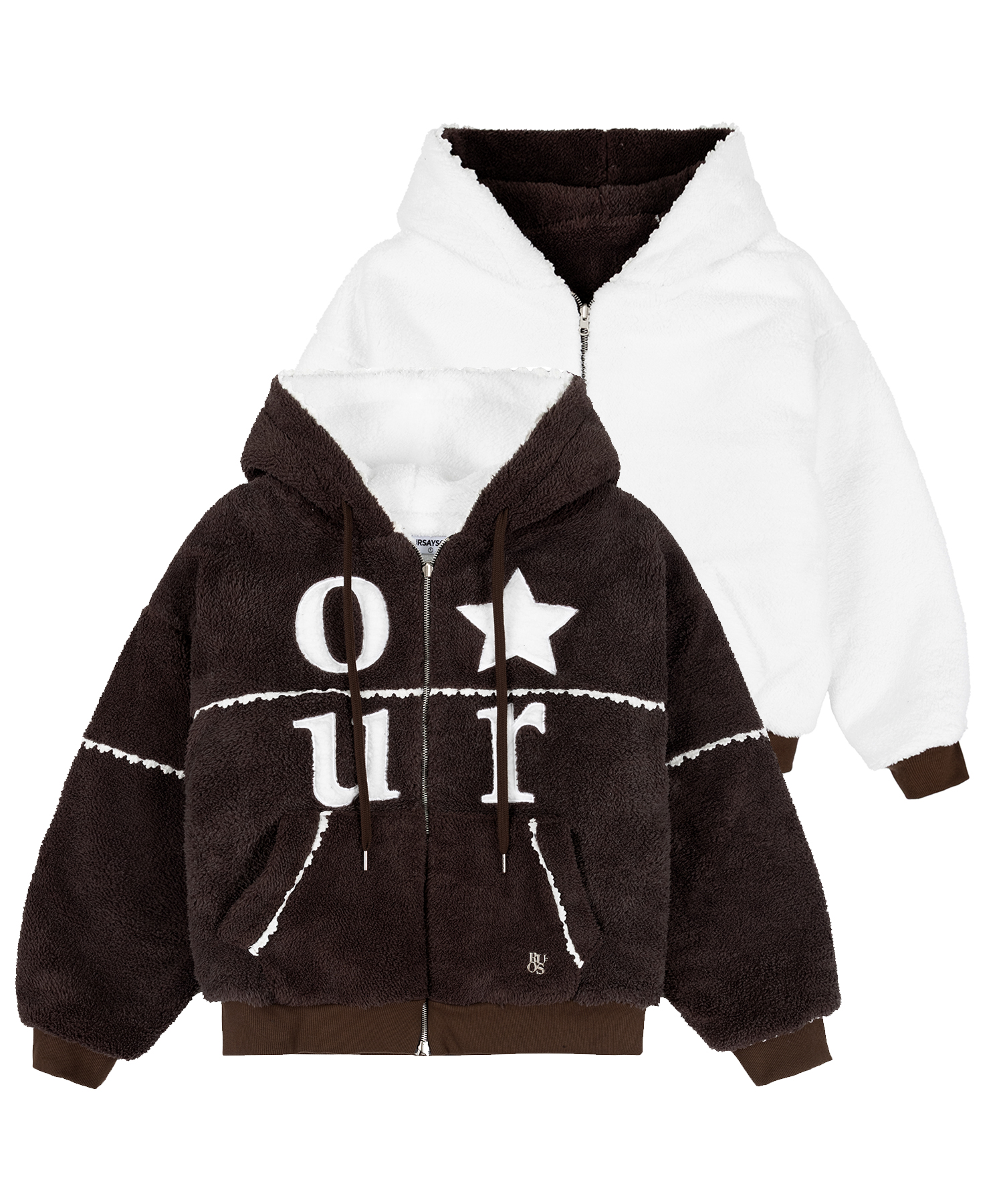 레이스 플리스 배색 리버시블 점퍼 브라운