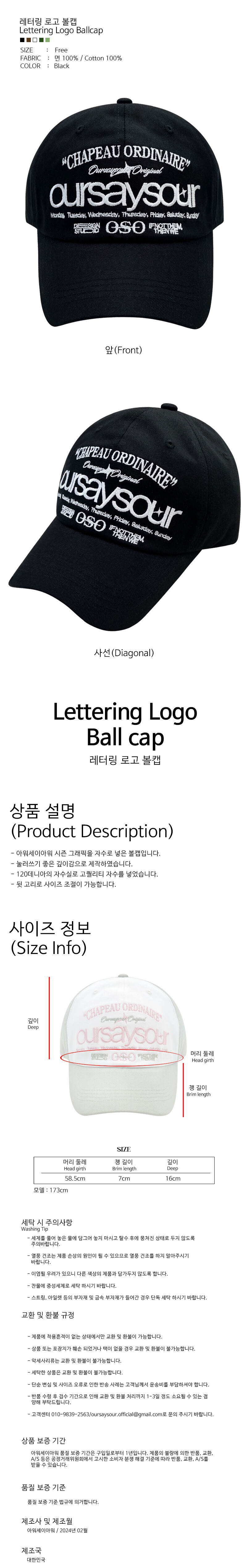 레터링 로고 볼캡 블랙