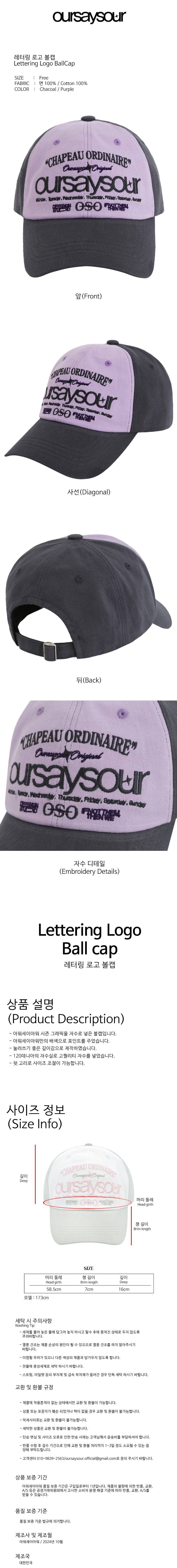 레터링 로고 볼캡 챠콜/퍼플