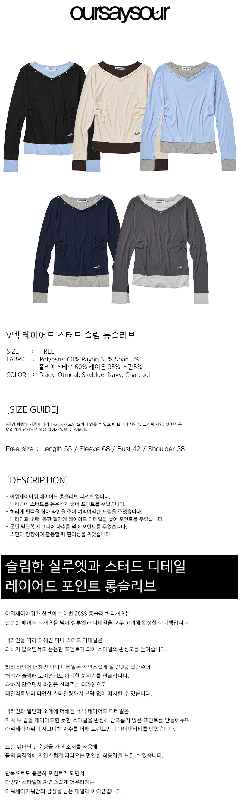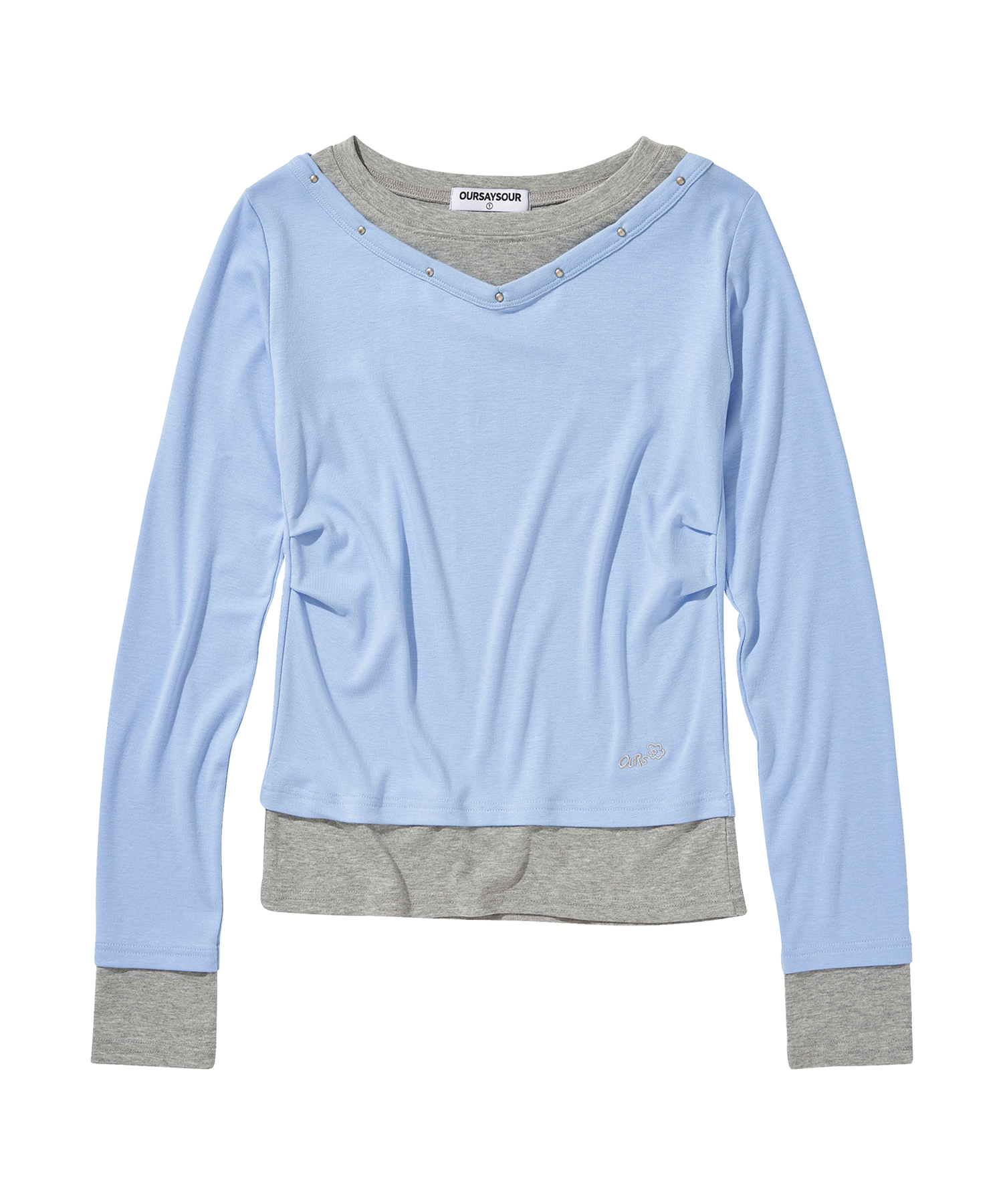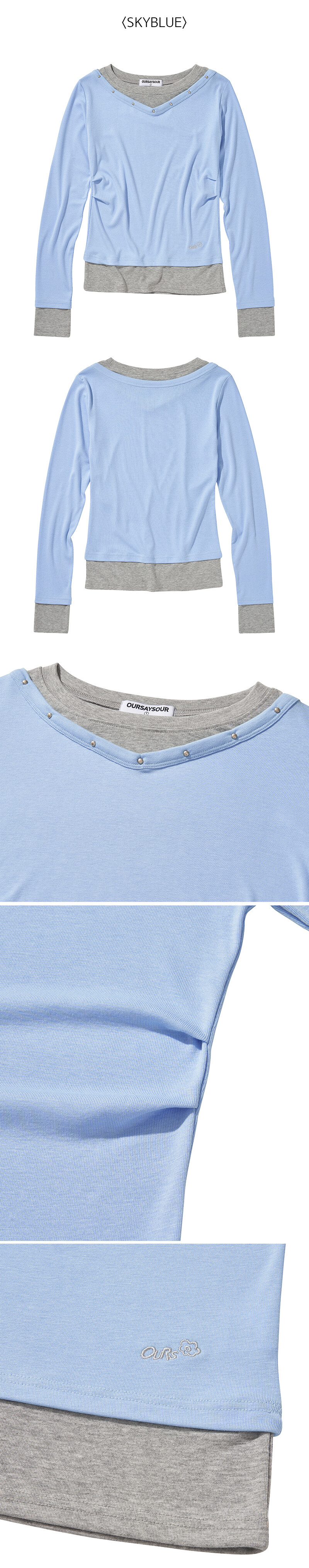 V넥 레이어드 스터드 슬림 롱슬리브 스카이블루