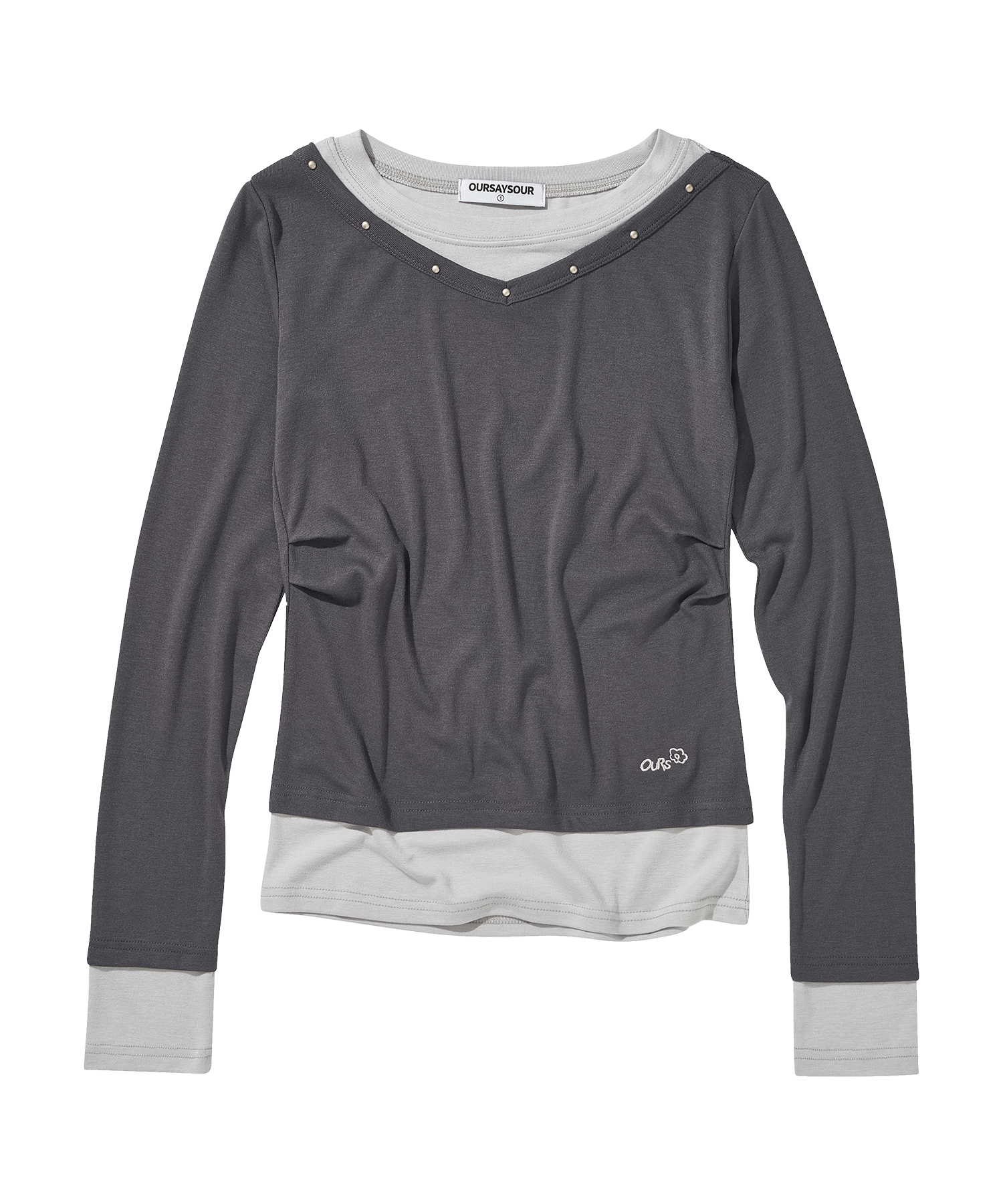 V넥 레이어드 스터드 슬림 롱슬리브 챠콜