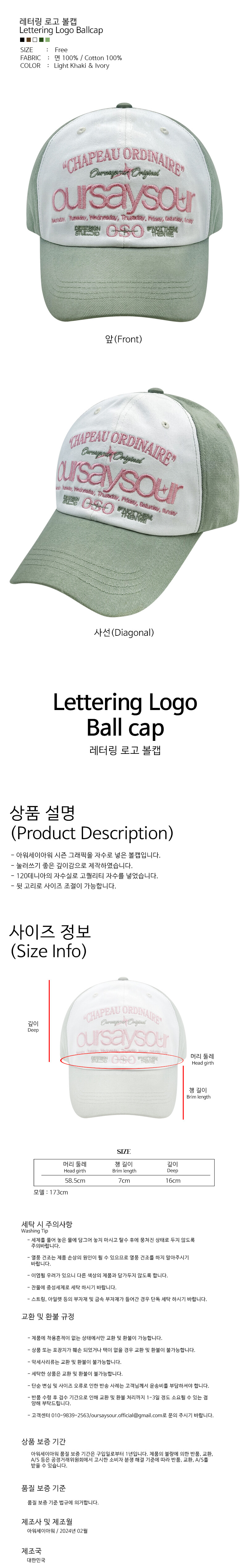 레터링 로고 볼캡 연카키/아이보리