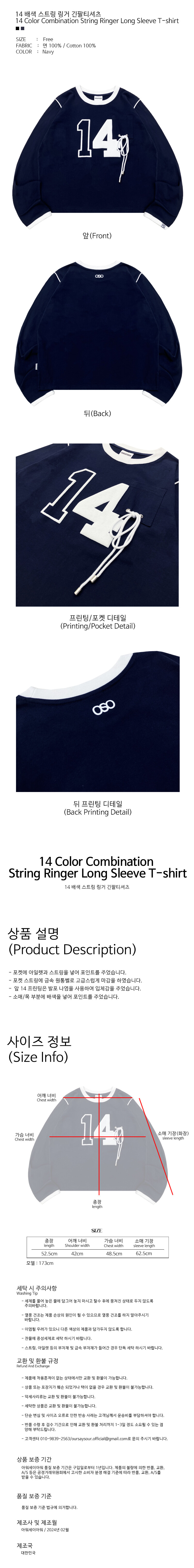 14 배색 스트링 링거 긴팔티셔츠 네이비