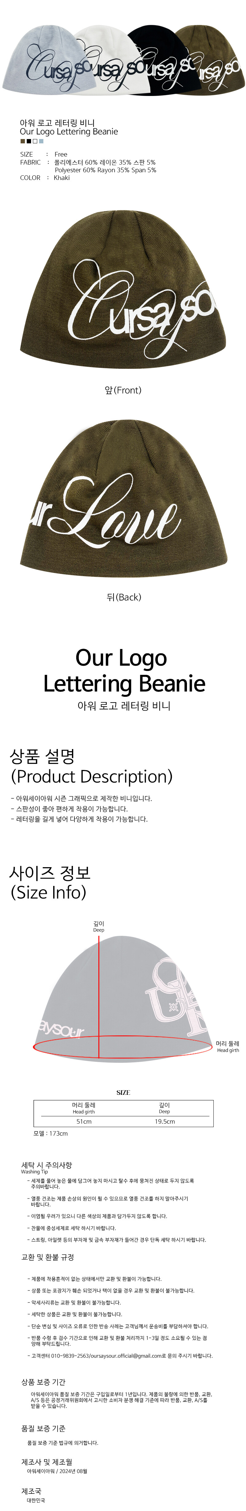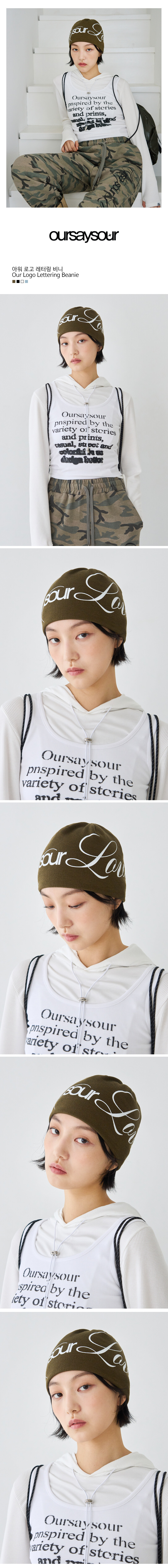 아워 로고 레터링 비니 카키