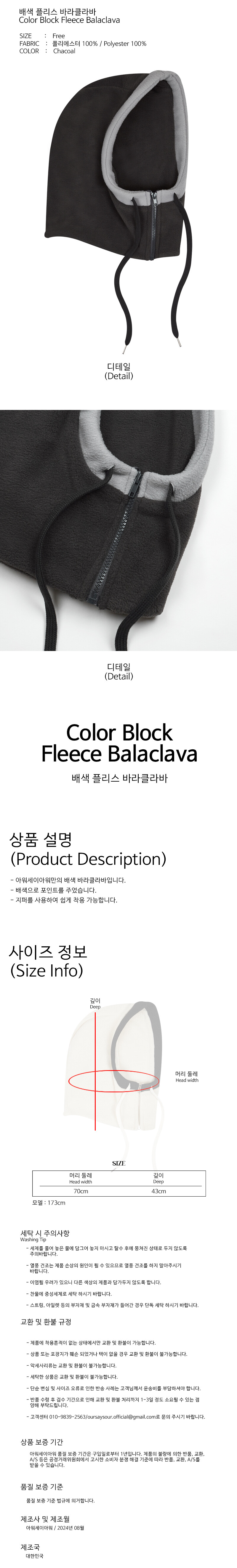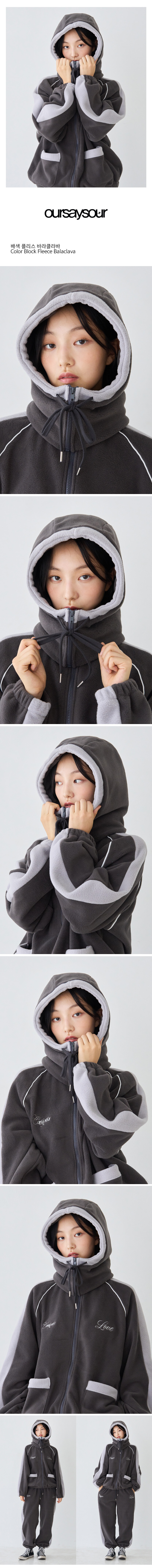 배색 플리스 바라클라바 챠콜