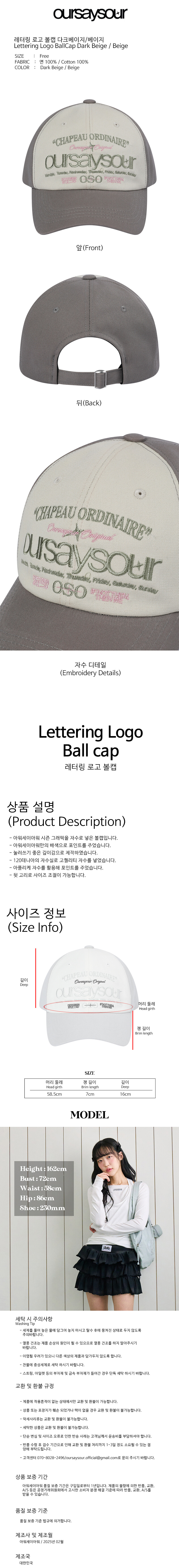 <볼캡 맛집 아워세이아워의 25SS 새로운 컬러 레터링 로고 볼캡이 출시 되었습니다!>