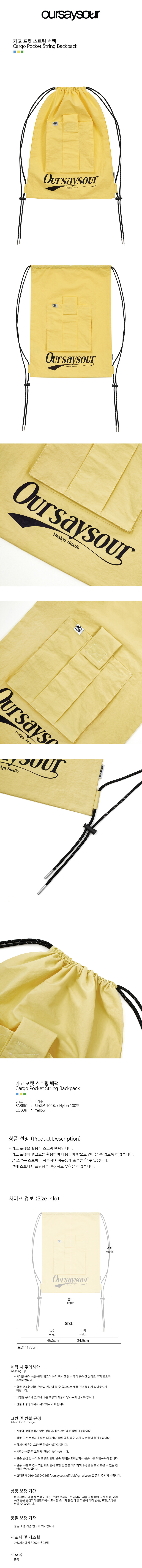 [8월 20일 배송] 카고 스포티 스트링 백팩 옐로우