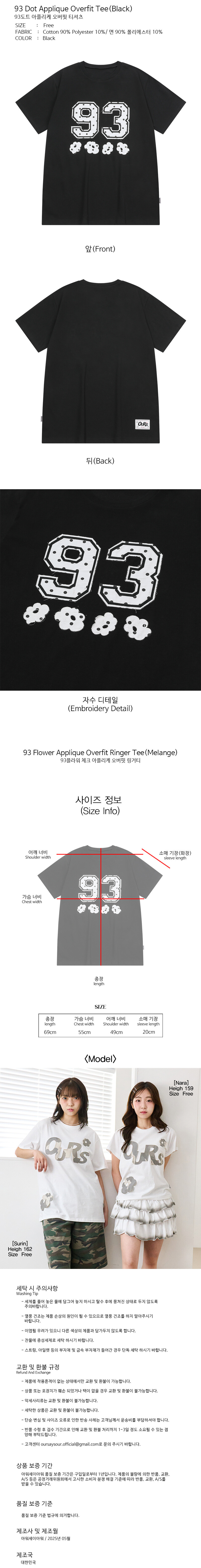 93 도트 플라워 아플리케 오버핏 반팔 블랙