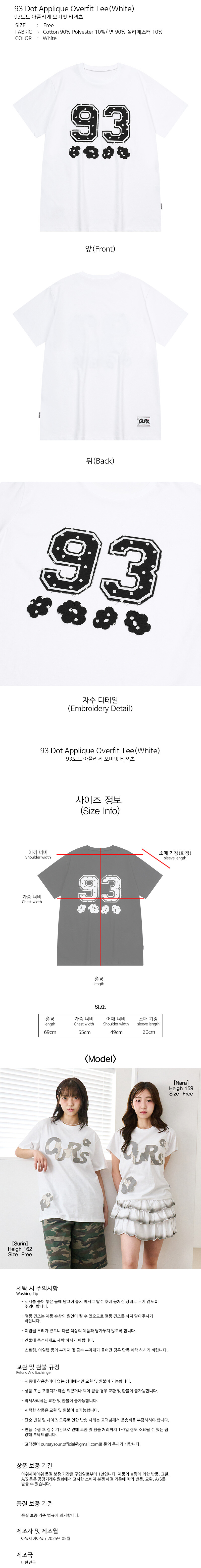 93 도트 플라워 아플리케 오버핏 반팔 화이트