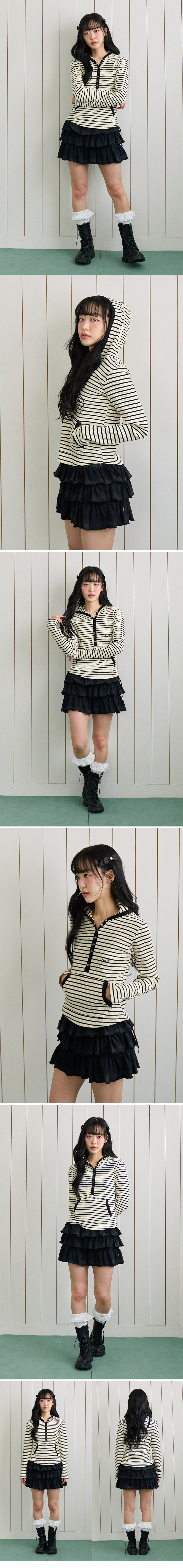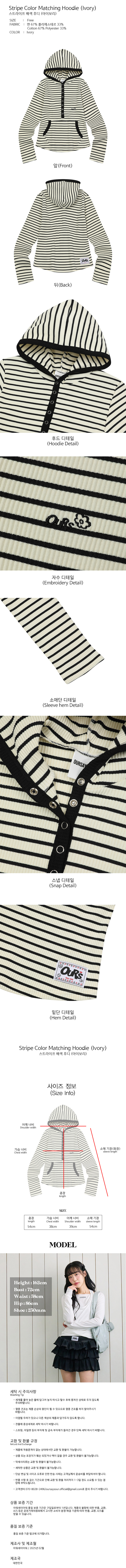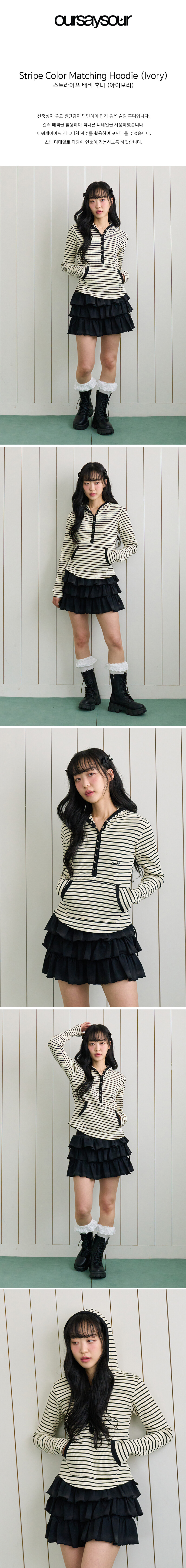 스트라이프 배색 후디 아이보리