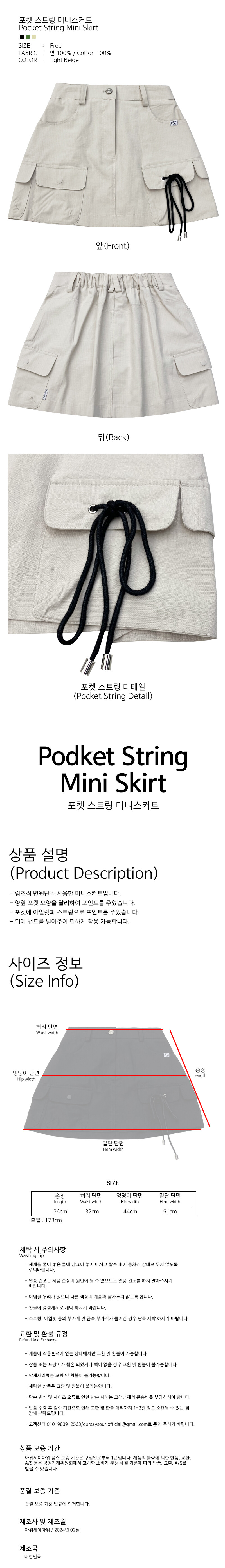 포켓 스트링 미니스커트 연베이지