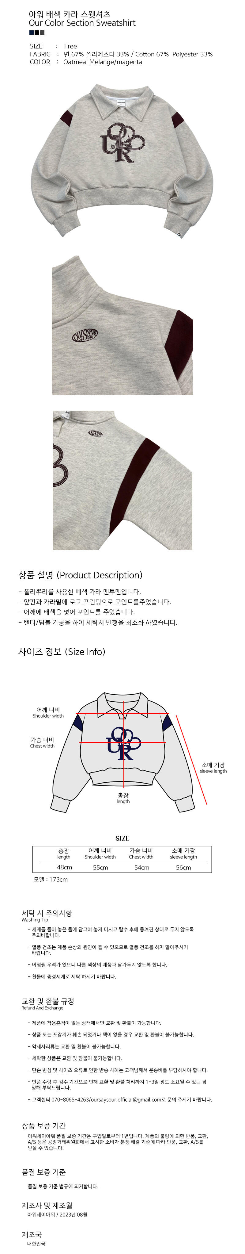 아워 배색 카라 스웻셔츠 오트밀/마젠타