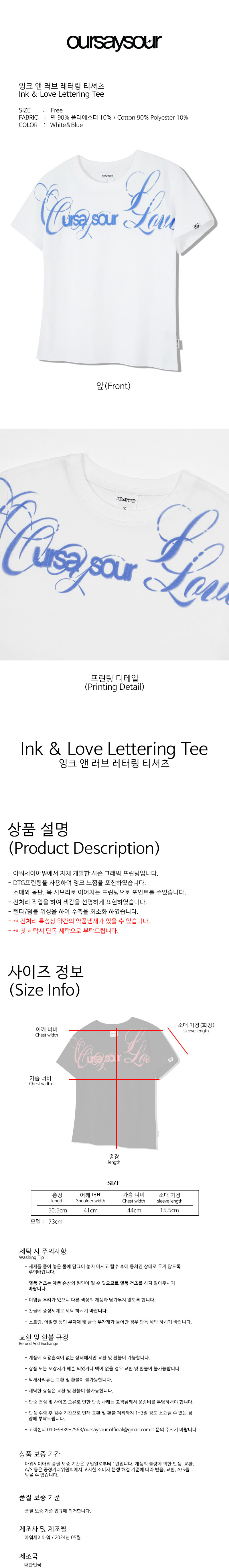잉크 앤 러브 레터링 티셔츠 화이트/블루