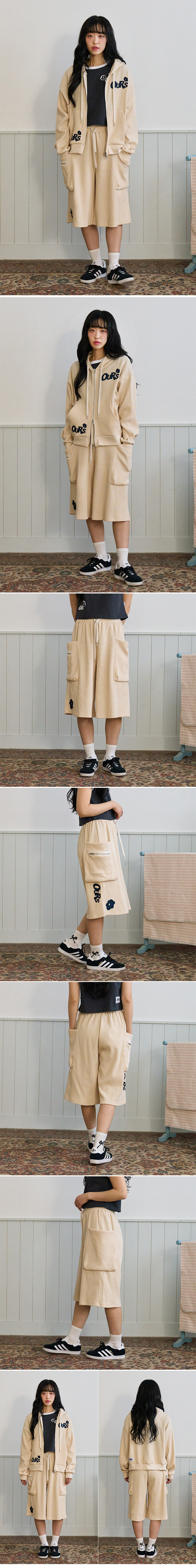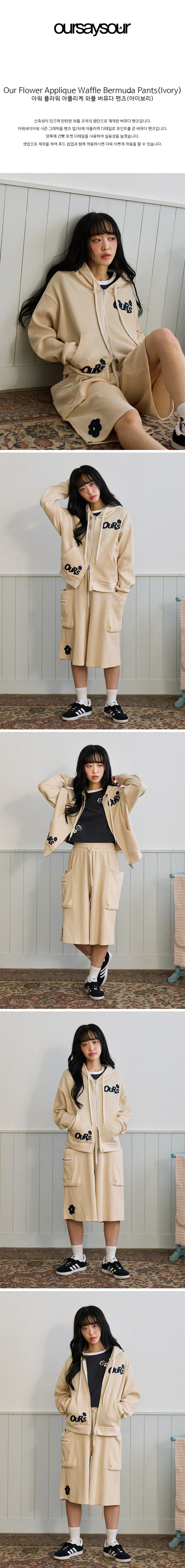 아워 플라워 아플리케 와플 버뮤다팬츠 아이보리