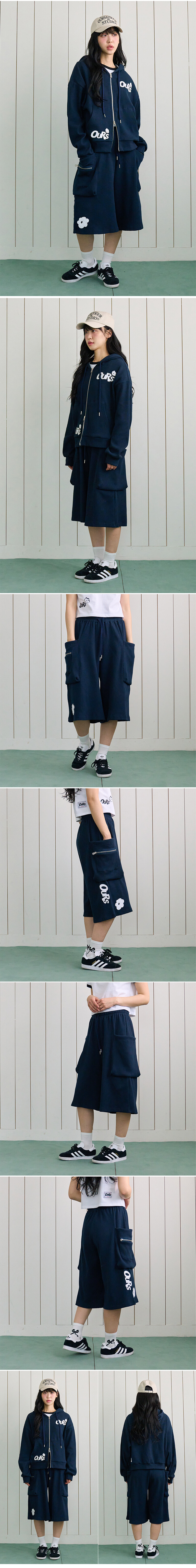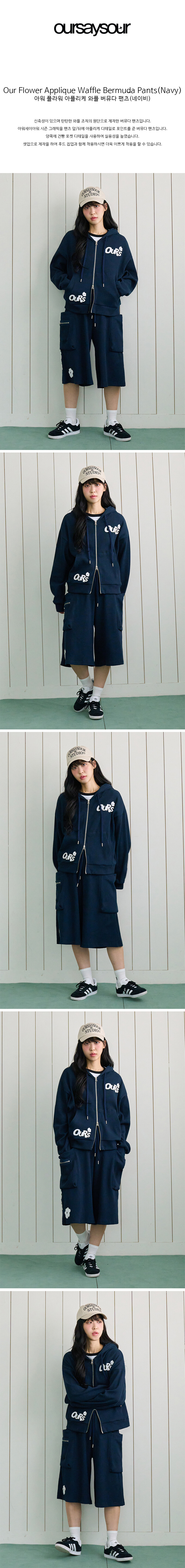 아워 플라워 아플리케 와플 버뮤다팬츠 네이비