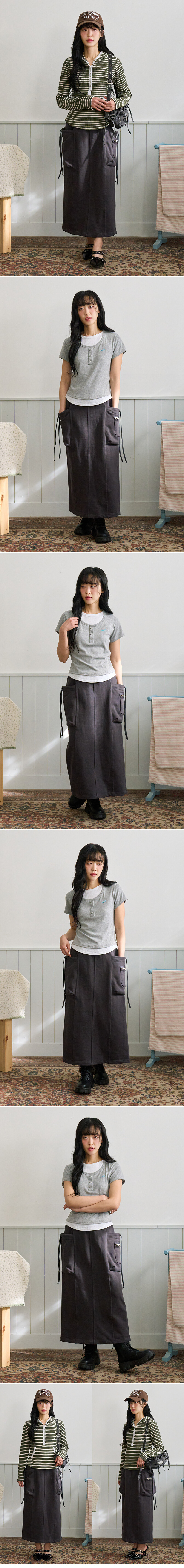 카고 포켓 리본스커트 챠콜