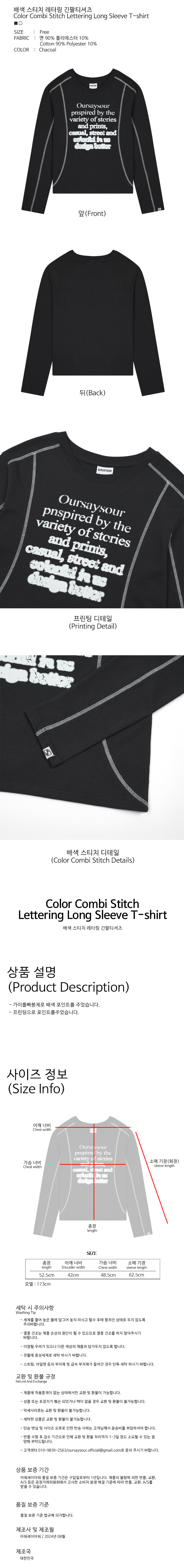 배색 스티치 레터링 긴팔티셔츠 챠콜