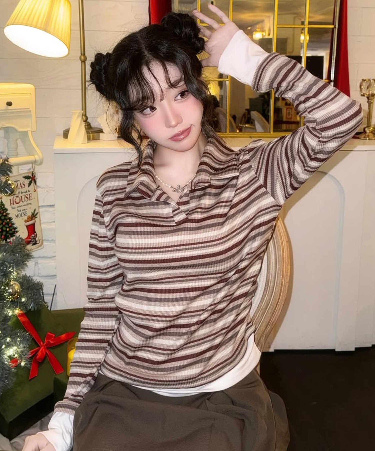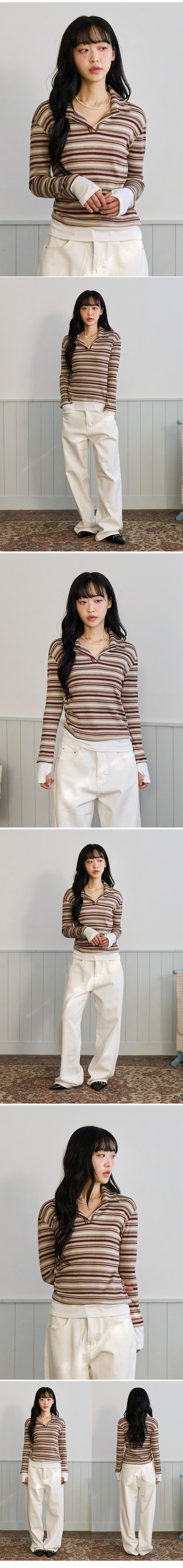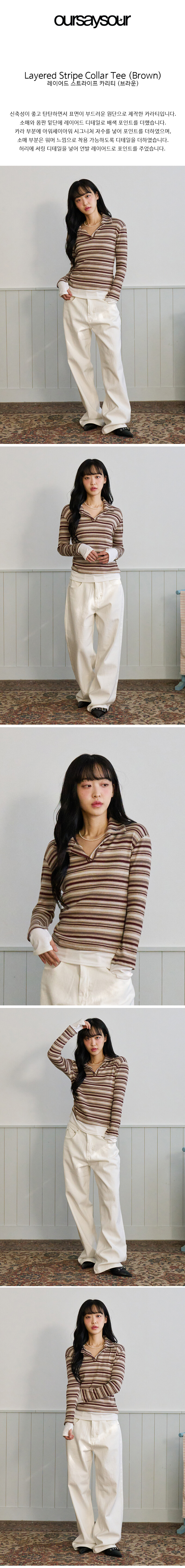 레이어드 스트라이프 카라티 브라운