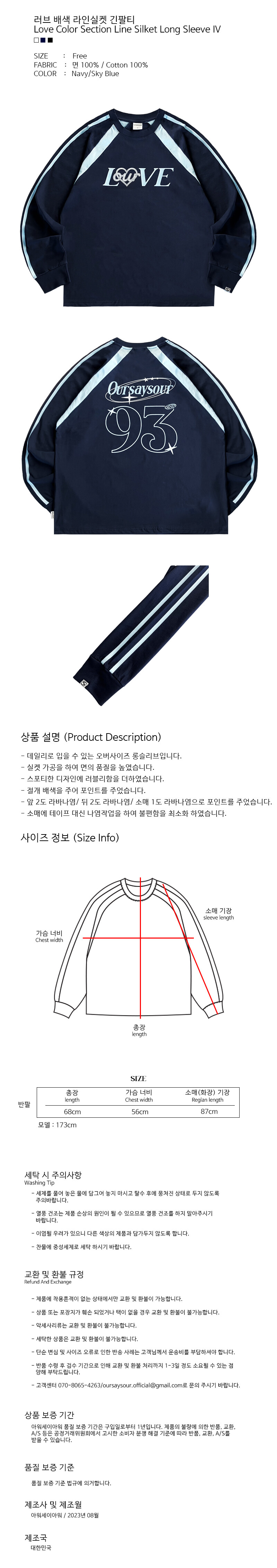 러브 배색 라인 실켓 긴팔티 네이비/스카이블루