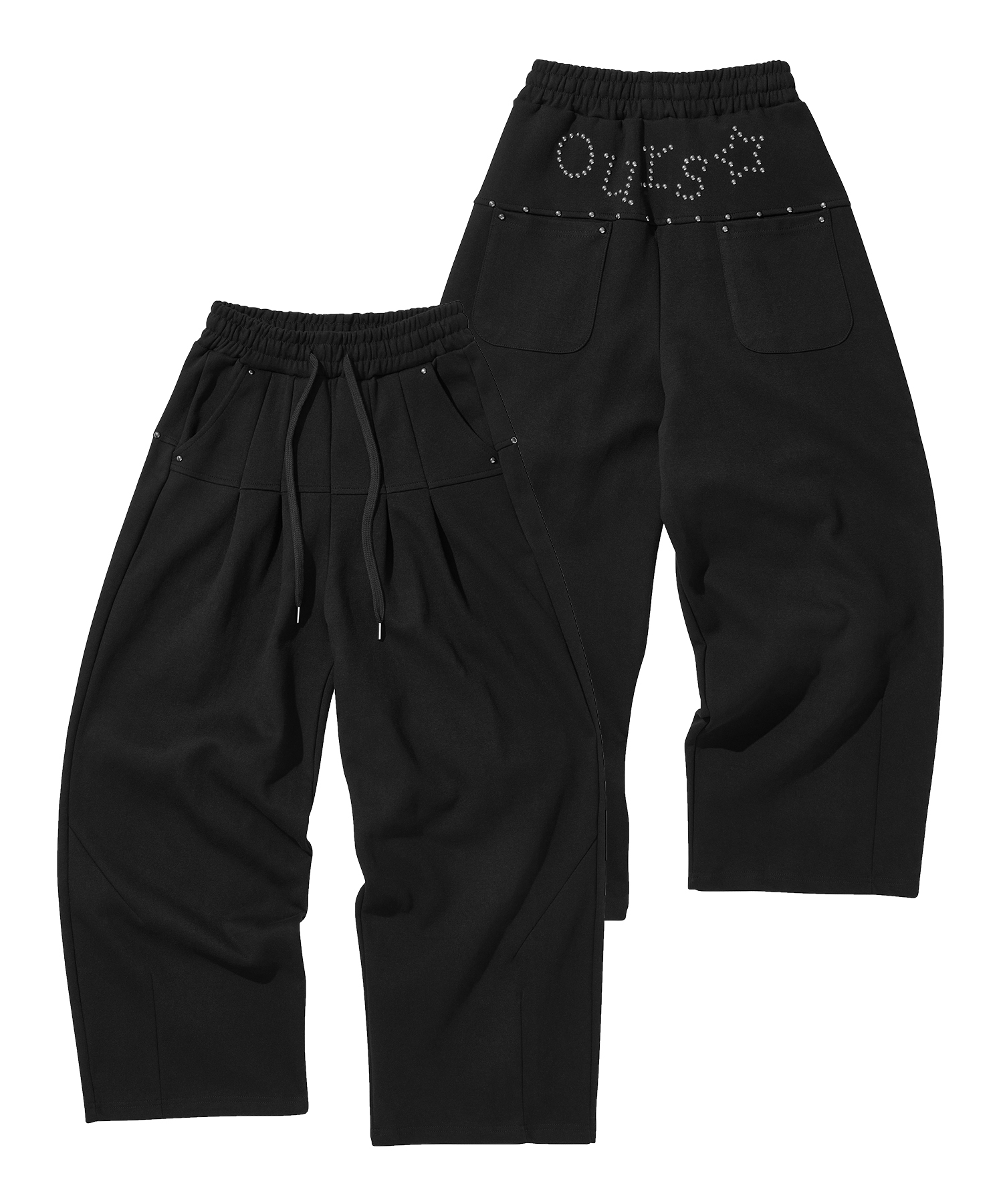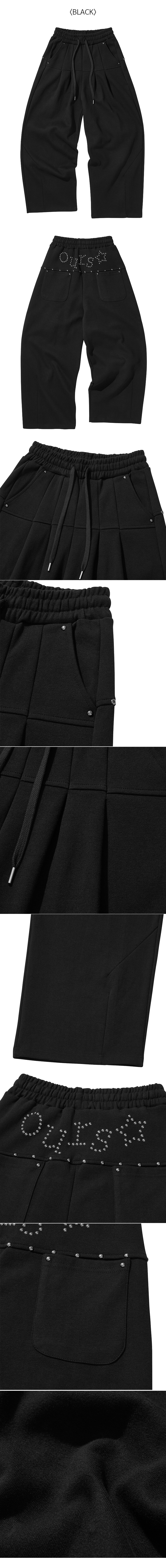 OURS 스타 핫픽스 핀턱 와이드 팬츠 블랙