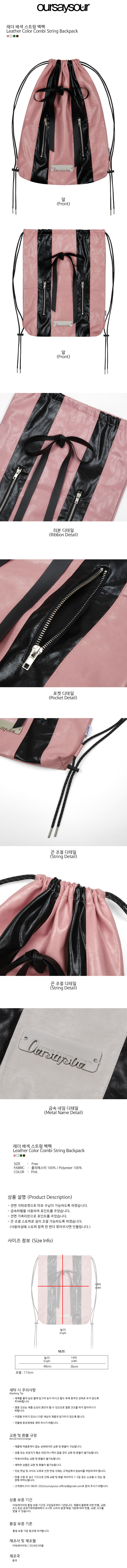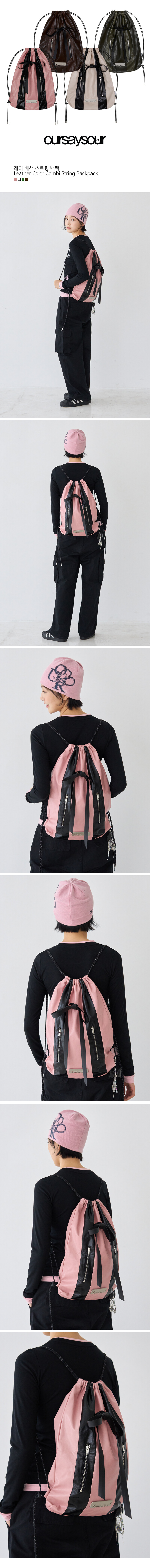 레더 배색 스트링 백팩 핑크