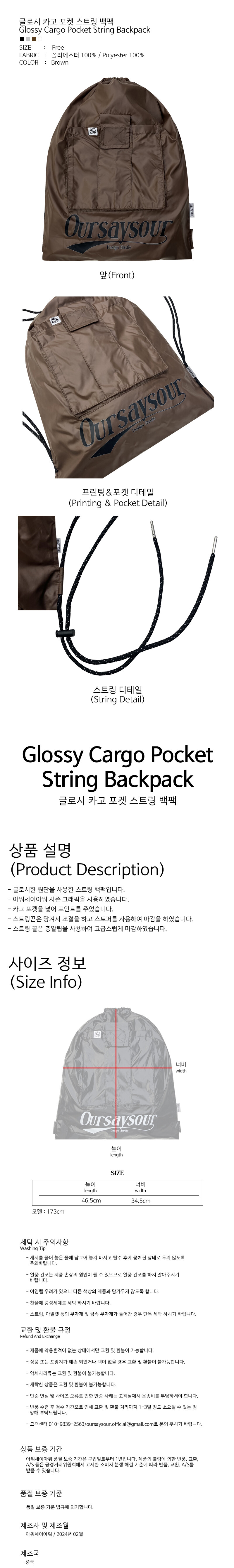 [7월 12일 배송] 글로시 카고 포켓 스트링 백팩 브라운