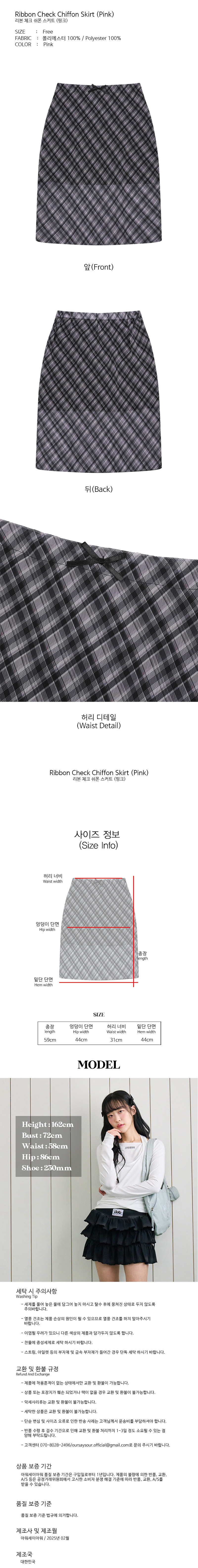 리본 체크 쉬폰 스커트 핑크